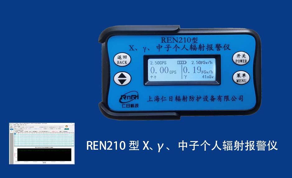 REN210 個人計(jì)量報(bào)警儀REN210型X、γ、中子個人輻射報(bào)警儀內(nèi)置SiPM和鋰玻璃晶體組成中子探測器儀器,采用反照率方式探測中子射線,同時也能探測X、γ射線。因此它可同事監(jiān)檢測X、γ、中子三種射線。能顯示工作場所的劑量當(dāng)量率和累積劑量,更換電池時,日期及累積數(shù)據(jù)能永久保存?蛇x配RenRiPersonal個人劑量管理軟件,該軟件可存儲多個人的歷史數(shù)據(jù),能記錄日累積、月累積、年累積、輻照時長、計(jì)算平均劑量率、扣除或不扣除本底輻射,且以文字和圖譜的方式展現(xiàn)數(shù)據(jù)。廣泛應(yīng)用于環(huán)保、化工、水泥、煤礦、土木工程、石油、醫(yī)院、疾控、進(jìn)出口商檢、核電、加速器、機(jī)場、中子源庫和其他安檢、邊境控制海關(guān)檢測等領(lǐng)域中的工作人員進(jìn)行個人安全防護(hù)監(jiān)測及放射性提示。